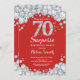 Invitation surprise 70e anniversaire. Arrière - plan rouge et argent en strass diamant rouge . Élégant invitation de Bassorh Anniversaire. Anniversaire adulte. Femmes Anniversaire. Hommes Anniversaire. Pour plus de personnalisation, cliquez sur le bouton "Customiser" et utilisez notre outil de conception pour modifier ce modèle.