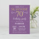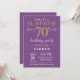 Surprise 70e anniversaire Invitation avec Arrière - plan Parties scintillant violet et or. Tableau de bord. Anniversaire adulte. Hommes ou Femmes Anniversaire Invitation. N'importe quel âge. Pour plus de personnalisation, cliquez sur le bouton "Customiser" et utilisez notre outil de conception pour modifier ce modèle.