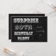 C'est une surprise invitation de fête de 80ème anniversaire avec un flair moderne et amusant vintage! Ce design présente un thème de tableau noir avec les mots "SURPRISE 80th BIRTHDAY PARTY" sur le devant qui a également un endroit pour vous de customiser le design avec le nom de l'homme ou de la femme anniversaire. Le thème du tableau de bord se poursuit à l'arrière, où vous pouvez placer tous les détails de la fête. C'est un grand invitation à une fête du 80ème anniversaire. Copyright henishouseo