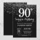 Invitation surprise 90e anniversaire avec voyants à cordes d'argent avec Arrière - plan Parties scintillant d'argent. Anniversaire de l'Argent. Anniversaire adulte. Hommes ou Femmes Anniversaire Invitation. 13ème 15ème 16ème 18ème 20ème 21ème 30ème 40ème 50ème 60ème 70ème 80ème 90ème 100ème, Tout âge. Pour plus de personnalisation, cliquez sur le bouton "Customiser" et utilisez notre outil de conception pour modifier ce modèle.