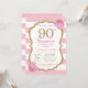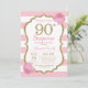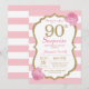 Invitation surprise 90e anniversaire. Rose et Or. Parties scintillant or. Les rayures rose et blanche. Fleur Florale Rose. Anniversaire adulte. Fête d'anniversaire des femmes. Pour plus de personnalisation, cliquez sur le bouton "Customiser" et utilisez notre outil de conception pour modifier ce modèle.