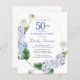 Des fleurs d'hydrangée bleue et des roses roux décorent un cadre ovale doré. Une botanique moderne ouverte et aérée.