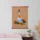 Oie avec "Bienvenue" à travers le bas du corps, est habillé en casquette conique avec ruban orange et foulard autour du cou. Le corbeau noir marche derrière. Tous deux traversent des tournesols et des glands dans le sentier.