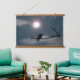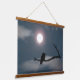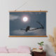 Pleine lune dans le ciel nuageux. Le clair de lune se réfléchit au large des nuages et le dos éclairent la silhouette d'un colibri assis sur une branche d'arbre nu.