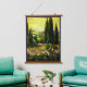 Magnifique tapisserie accrochée avec l'un des vitraux de Tiffany. Soleil sur les collines avec des fleurs au premier plan.
