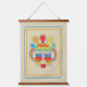 Tapisserie en Masque Diablo Huma - Arrière - plan beige, imprimé sur tissu et paré de rails en bois sur le dessus et le fond. REMARQUE : L'oeuvre n'est PAS tissée mais l'art photo d'un masque Inca tissé.