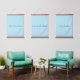 Suspendue Tirée sur Tapisserie Set de 3 en Bleu Océan avec p