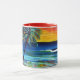 Peinture du coucher de soleil impressionniste avec des reflets rouges sur la côte. Tableau intitulé Le coucher de soleil de Kim.