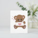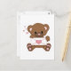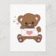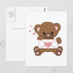 Baiser en forme de coeur sur une enveloppe qu'un ours en peluche rose tient.