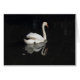 Une photo d'un cygne blanc planant sur l'eau sombre et tranquille. Prise à Roath Park Lake, Cardiff, Pays de Galles.