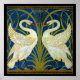 Paire de cygnes art déco dans les roseaux et l'eau.