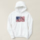 Confiez le sweatshirt en coton blanc avec sweat - shirt à capuche. Portez avec fierté américaine. Le drapeau coule avec ses étoiles et ses rayures dans le vent. Être habité. Disponible en différents styles (t-shirts) et couleurs. Egalement disponible en t-shirts pour femmes.