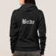 Ce sweat - shirt à capuche à fermeture éclair souple Bella pour la mariée à se détendre est montré en noir et a une couleur blanche Texte de mariée sur l'avant et l'arrière. Customisez cet objet ou achetez tel quel.