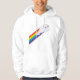 Un sweat - shirt à capuche mignon comportant un joint blanc de kawaii de bébé avec les nageoires mignonnes, la queue, et le sourire doux montant en flèche dans l'air sur un jet de carburant d'arc-en-ciel ! Grand pour des fans d'art de bruit et d'humour japonais de kawaii.