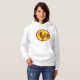 Un coq rouge et noir sur un arrière - plan. Ce design semble vraiment efficace sur ce Sweat - shirt à capuche féminin