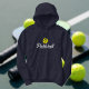 Sweat - shirt à capuche sportif à manche longue pour hommes. Vêtements de tennis personnalisés avec logo boule jaune et texte de script. Sports cool Anniversaire fête idée cadeau pour fan, joueur, coach, père, adolescent, mari, père, oncle, grand-père, petit-ami etc. Modifiez le logo de la bille en n'importe quelle couleur. Idéal aussi pour les autres activités. Personnalisez avec votre propre citation drôle ou nom d'équipe. Disponible en bleu marine et d'autres couleurs. Sweatshirt sportif pour lui. Idées cadeaux de Noël pour les gars.
