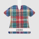 Motif en tissu plaid en rouge vert bleu blanc avec le prix SWEATER CHRISTMAS personnalisé en noir, personnalisé ANNÉE en noir sur le dos. Idéal pour TOUT concours de fête de vacances. Coloré, Jouant, Amusant. Mélanger et faire correspondre toute la collection d'ornement de Noël par TMCdesigns.