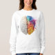 Artistic representation of the human brain, where the left hemisphere is monochromatic (white/cream) and the right hemisphere explodes in vibrant watercolor colors.