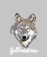 Le sweatshirt cagoulé de ce garçon est montré en gris. Manches longues, poches kangourous et coiffure avec la phrase "Yellowstone" complétée par un graphique de tête de loup.