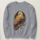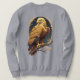 Une illustration numérique détaillée d'un majestueux aigle doré perché sur une branche, encadré par des éléments décoratifs de laurier. Des tons dorés chauds soulignent la force, la noblesse et l'élégance sauvage de ce portrait de rapace.
