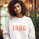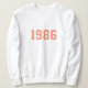 Sweatshirt de l'année de naissance personnalisée "1986", élégant et tendance, dans une typographie moderne minimaliste et audacieuse style bloc collège en rose corail. Le cadeau d'anniversaire parfait pour célébrer votre année de naissance, d'établissement et de vintage qui peut être facilement personnalisé avec votre propre année.