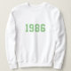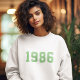 Sweatshirt de l'année de naissance personnalisée "1986" élégant et tendance dans la typographie moderne minimaliste en bloc style université en vert. Le cadeau d'anniversaire parfait pour célébrer votre année de naissance, d'établissement et de vintage qui peut être facilement personnalisé avec votre propre année.