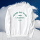 Après le Ski Club, la crête de la station de ski verdoyante, sweatshirt blanc. Personnalisez avec l'année de votre voyage à ski, le nom de la station de ski et son emplacement. Idéal pour une excursion en ski de groupe, comme cadeau pour se souvenir d'un voyage passé ou pour un après-ski thème bachelorette. Conçu pour correspondre à notre collection Après Ski Club.