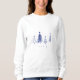Le minimaliste moderne Joyeux sapin de Noël Sweatshirt est un vêtement de vacances élégant et confortable. Il présente un design simple mais élégant avec quatre sapins stylisés dans les tons bleu et blanc, disposés en ordre croissant de hauteur. Les arbres ont des motifs variés, dont solides, rayés et pointillés, et sont complétés par de petits points représentant des flocons de neige ou des étoiles.