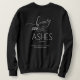 Un sweatshirt à col noir avec un verset blanc "Beauté pour cendres" Isaïe 61:3 de la bible. Il s'agit d'un sweatshirt qui peut être personnalisé à l'arrière avec un nom ou d'autres mots > simplement supprimer cette option si ne pas l'utiliser.