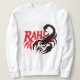 Un sweatshirt blanc de femme avec un design graphique audacieux d'un scorpion dans une pose dynamique.