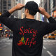 This bold “Spicy Life” design features vibrant red lettering paired with a flaming chili pepper icon, creating a fun and energetic aesthetic. Perfect for anyone who loves heat, humor, and a lively lifestyle. The bright contrast against the dark background makes it eye-catching on apparel, accessories, and home items, adding a fiery touch to everyday style.