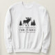 Sweatshirt masculin avec votre nom de famille personnalisé et cabine, chalet ou autre texte désiré, ainsi qu'une date et un lieu établis. Ce design personnalisé présente une typographie de style rustique avec des oeuvres d'orignaux et des pins silhouettes en noir. Pour voir d'autres modèles comme celui-ci, n'hésitez pas à visiter ma boutique ici à "Zazzle.com/Rustic_Charm". Merci .