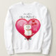 Chat Lucky (Maneki Neko) mignon et humoristique avec un coeur et des ballons pour la Saint-Valentin. Traduction japonaise : "Heureuse Sainte-Valentin" en haut, "Maneki Neko" en bas, "Amour" en bas, à gauche, et "Chance" en haut à droite dans le coeur.