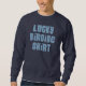 Ce joli texte dit "Chemise à oiseaux chanceuse" et incorpore des silhouettes d'oiseaux dans les lettres. Vous pouvez totalement customiser ce cadeau ! Ajoutez du texte, changez de couleur, déplacez le design, choisissez un style différent - faites-le vous-même !