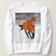 Sweatshirt Cheval gambadant de peau de daim dans la neige