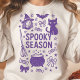 Ce sweatshirt fantaisiste est parfait pour célébrer la saison éffrayante. Le design de style doodle présente des illustrations dessinées à la main d'arcs de coquette, de bonbons, d'une sorcière, d'un chat, d'une chauve-souris, d'un chaudron, etc., tout autour de la phrase festive "saison Éffrayante". C'est une excellente façon de célébrer Halloween cette saison.