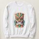 Le visage de Tiki, menaçant mais impressionnant, orné de sculptures complexes et de feuilles verts luxuriants, est un symbole de mystère et de majesté.