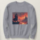 A dark knight — a mysterious fantasy warrior from the burning lands, surrounded by lava and a hellfire landscape. This armored fighter is a true skull warrior, reigning over an epic fantasy and fantasy realm. Full of evil and power, he roams a land filled with fire and volcanic mountains.