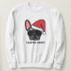 Joignez-vous à la fête avec ce mignon sweatshirt de Noël. Le design comprend un bulldog français noir et bronzé portant un chapeau de Père Noël rouge et des lunettes de soleil d'aviateur avec le libellé "Père Noël Paws" imprimé en dessous.