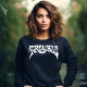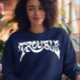Ce sweat a le mot Trouble écrit dessus en grandes lettres blanches.