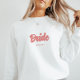 T-shirt personnalisé rose 'Mariée' Enterrement de vie de jeune fille. Personnalisez ce sweat-shirt de mariage minimaliste et élégant avec le nom de la mariée sous 'mariée' en lettres cursives roses. Fait un article parfait pour une fête de bachelorette ou une douche nuptiale.