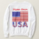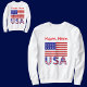 Sweatshirt masculin personnalisé avec le drapeau des Etats-Unis d'Amérique, ou, drapeau américain avec les lettres USA ci-dessous en rouge, blanc et bleu avec étoiles et rayures, trouvé dans le drapeau. Personnalisez en ajoutant un nom pour un cadeau créatif ou vous-même. Cool pour 4 juillet célébrations et réunions de famille.