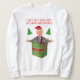 Sur ce sweatshirt de Noël humoristique / Chandail de Noël moche, le président des États-Unis Donald Trump tient la main en sortant d'une boîte à cadeaux et en portant un chapeau de Père Noël avec son slogan MAGA dessus. Il est entouré de quelques arbres de Noël et dit : "Mon vilain pull est un arbre à mendier !" Vous pouvez également modifier le texte si vous customisez.