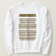 Ce sweatshirt présente un design qui présente les empreintes dans la prière de sable dans une police d'impression gagalin avec des lettres de couleur dorée et un contour noir dans ce thème de citation de prière basée sur la foi. Ce sweatshirt est fait à 100% coton cette chemise est à la fois peluche et durable qui font une grande combinaison a une image plus petite assortie sur le dos.