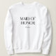 T-shirt personnalisé 'Maid of Honor' pour l'enterrement de vie de jeune fille de mariage. Personnalisez ce sweat-shirt noir et blanc simple et élégant avec le nom de la maid of honor en lettrage script élégant. Vêtement parfait pour célébrer votre mariage, y compris les fêtes de fiançailles et les enterrements de vie de jeune fille.