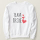 Design génial avec la citation "Team Bride" et trois coeurs rouges. Idée de tenue géniale et drôle pour une fête de bachelorette ou pour la fête de mariage.