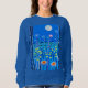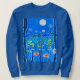 Sweatshirt dans une scène imaginaire de fleurs sauvages dans la forêt, sous la pleine lune, en soirée bleu et turquoise