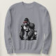 A bold black-and-white illustration of a powerful gorilla wearing red heart-shaped sunglasses and a sarcastic smile. This eye-catching design blends strength, humor, and love into one striking street art style graphic.
