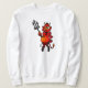 Un gros diable rouge avec un sourire mauvais tenant un trident.
