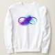 Infinity symbole with a beautiful feather painted in purple and blue bright colors on white background